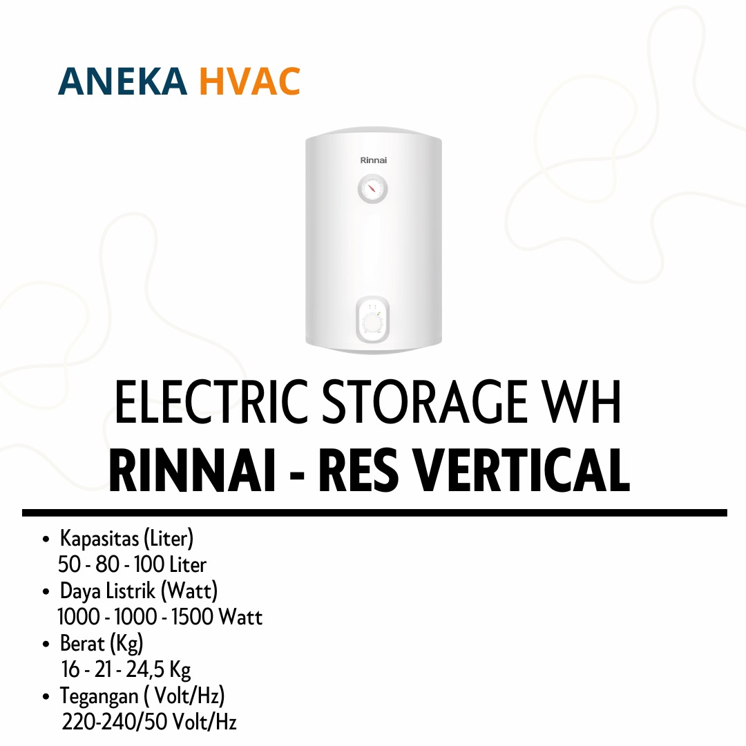 Rinnai Water Heater - Gold Series - RES Vertical. Dapatkan rasa kenyamanan mandi air hangat setelah seharian beraktivitas dengan Rinnai Water Heater Gold Series - RES Vertical . Produk ini dilengkapi dengan elemen pemanas berbahan Stainless Steel 310s yang berkualitas tinggi, tahan karat, dan tidak mudah keropos, memberikan daya tahan yang optimal.
