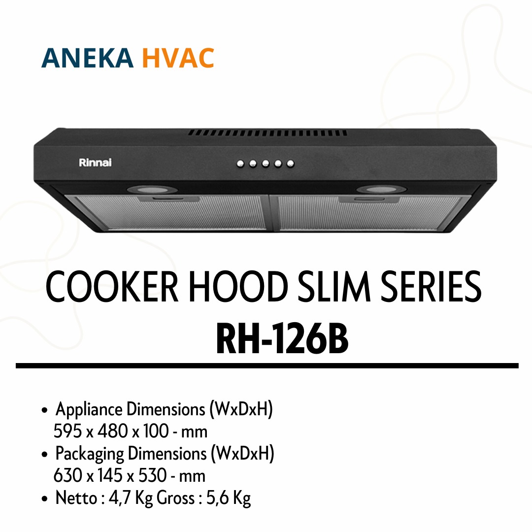 Rinnai Slim Hood RH-126B adalah alat penyaring asap dapur yang memiliki desain tipis dan modern. Dirancang untuk menghilangkan asap, bau, dan uap yang dihasilkan saat memasak, hood ini cocok digunakan di dapur dengan ruang terbatas berkat ukurannya yang slim.
