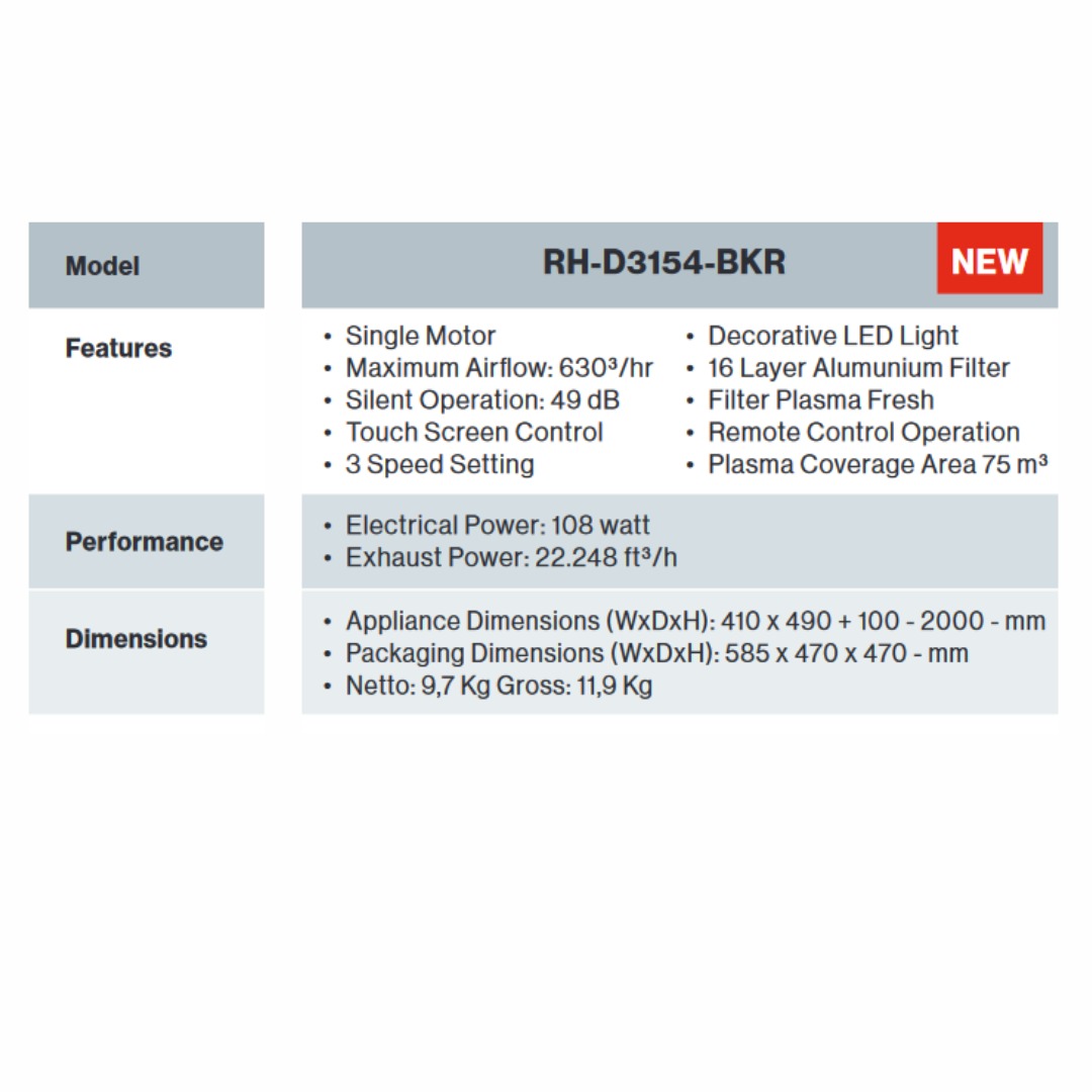 Rinnai - Island Hood RH-D3154-BKR adalah