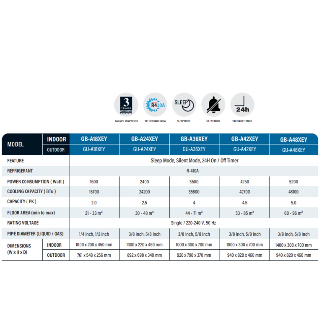 Didukung performa pendinginan yang stabil, unit ini cocok digunakan untuk kantor, hotel, restoran, ruang meeting, hingga area usaha lainnya. Kualitas khas Sharp memastikan daya tahan tinggi, operasional yang efisien, serta perawatan yang mudah untuk penggunaan jangka panjang.