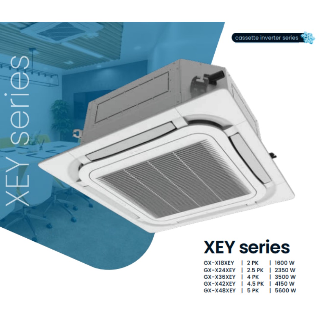 AC SHARP Cassette Inverter Series XEY Series dirancang untuk memberikan pendinginan optimal pada area komersial dengan tampilan plafon yang rapi dan modern. Sistem cassette memungkinkan distribusi udara merata ke seluruh ruangan, sehingga suhu lebih cepat dingin dan tetap nyaman.