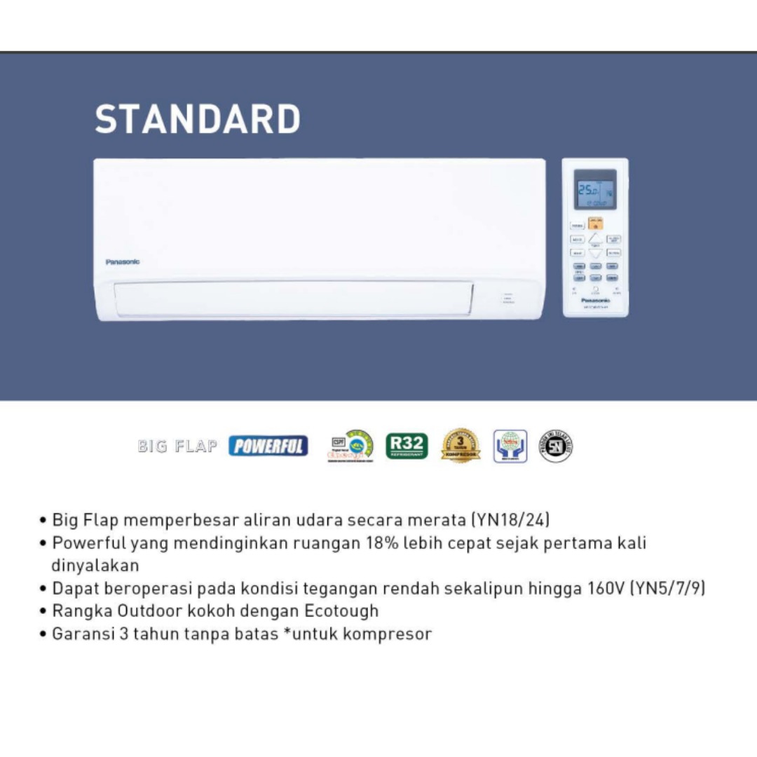 Solusi AC standar Panasonic yang nyaman, tahan lama, dan sesuai untuk kebutuhan sehari-hari.