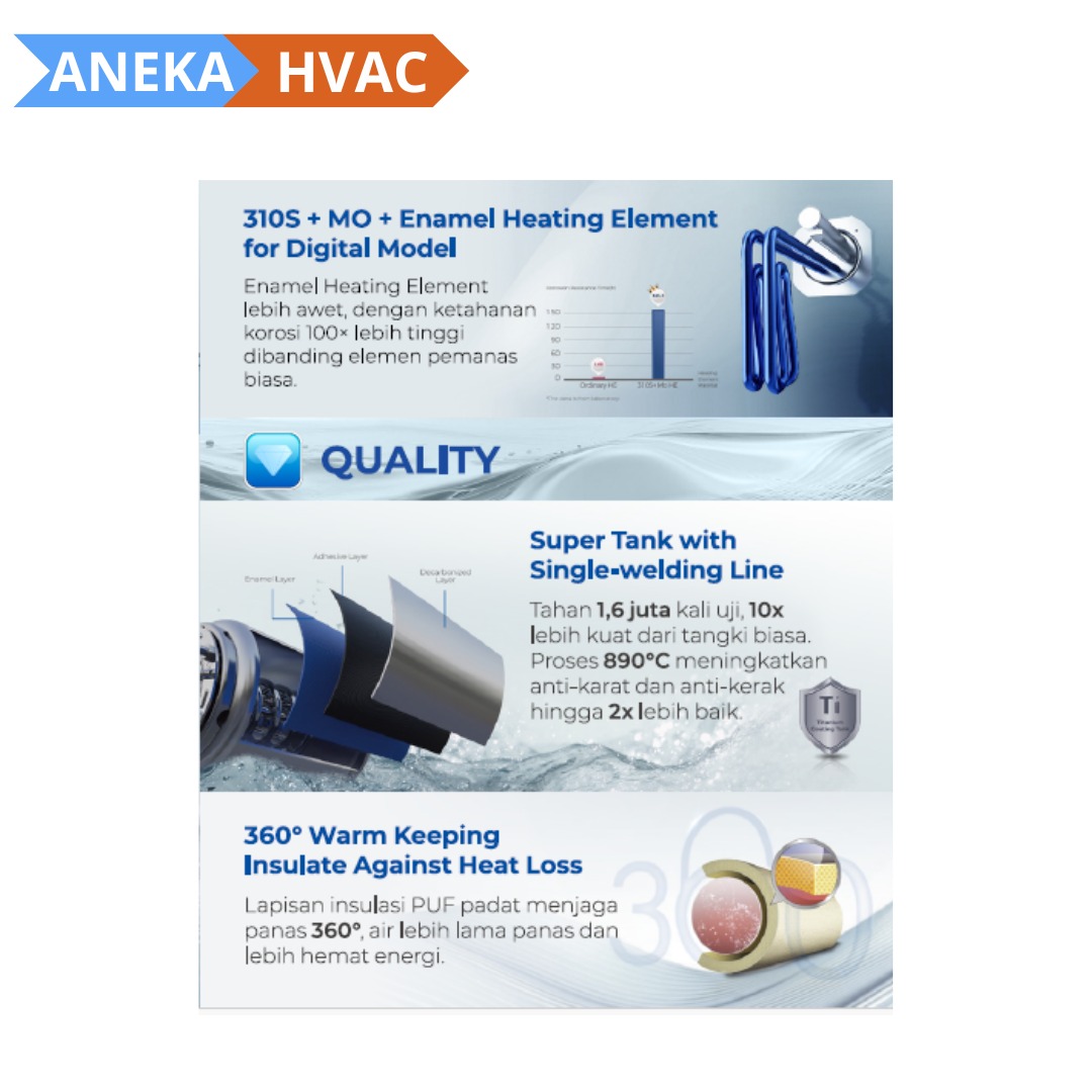 • Elemen pemanas berkualitas tinggi, tahan lama, dan efisien