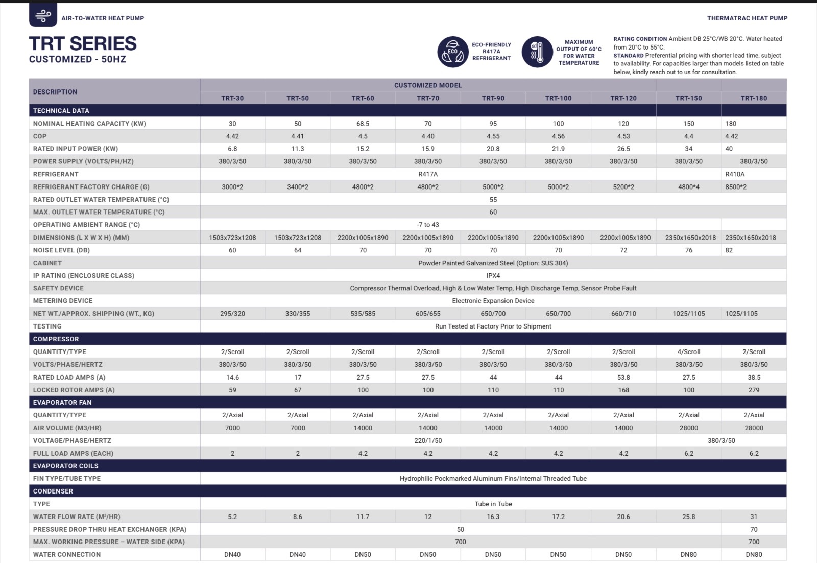 Terdapat tipe TRT -30, TRT-50, TRT-60, TRT-70, TRT-90, TRT-100, TRT-120, TRT-150, TRT-180