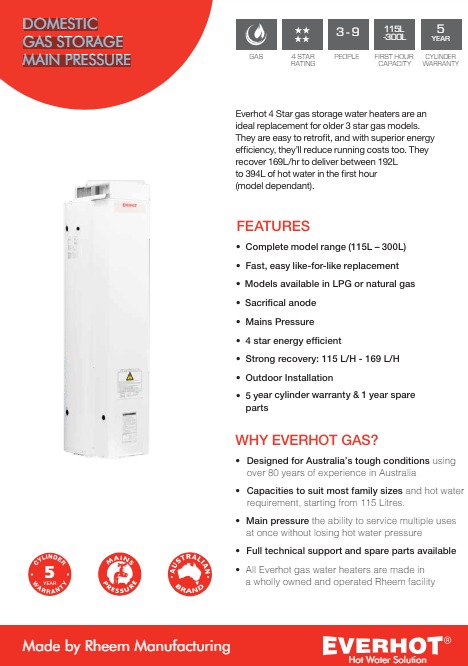 Pemanas air penyimpanan gas Everhot 4 Star adalah pengganti ideal untuk model gas bintang 3 yang lebih lama.