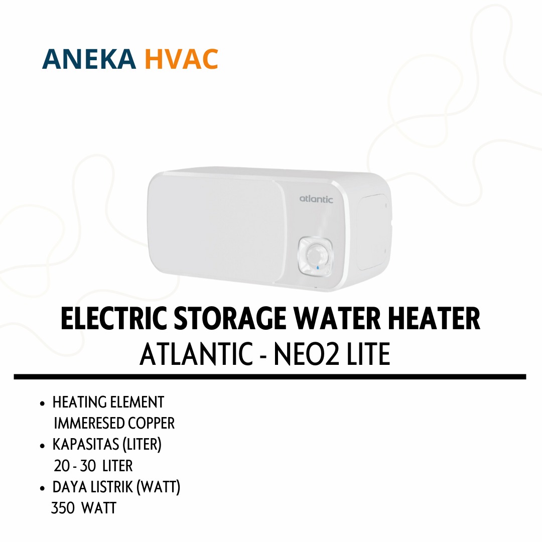 Atlantic - NEO2 LITE water heater ini terdapat posisi hemat pada tombol untuk lebih banyak energi penghematan sekaligus memperpanjang umur produk, tampilan yang jelas tentang status pemanasan melalui perubahan warna cahaya pada tetesan air (merah = menghangat / biru = siap untuk mandi).
